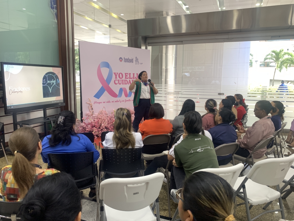 Durante el mes de la sensibilización sobre el cáncer, Fundavid adelantó una iniciativa que convocó a mujeres y hombres de todas las edades a valorar su salud y asumir el autocuidado como una herramienta poderosa para la detección temprana del cáncer. Se desplegaron activaciones en puntos estratégicos de la Torre Global Bank, generando espacios de encuentro, reflexión y educación y entrega de material informativo, donde se promovió el mensaje de que elegir cuidarse es elegir vivir con conciencia.